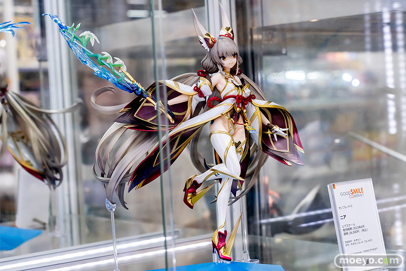 いよいよ今月2022年6月に発売される予定のグッドスマイルカンパニー新作美少女フィギュア「ゼノブレイド2 ニア」の、おそらくPVC製の彩色サンプルが、あみあみ 秋葉原ラジオ会館店で展示!『Nintendo Switch用ソフト『ゼノブレイド2』より「ニア」がブレイドとして覚醒した姿でフィギュア化。キャラクターデザイン齋藤将嗣氏の描き下ろしイラストを元に、ニアの凛々しさと美しさを完全再現しました。クリア素材やパール塗装などを多用した質感表現にも注目です。』というもので、原型制作はあきもふさん。彩色はあきもとはじめさん。企画制作はマックスファクトリーさん。その展示の様子を画像レビューとしてお伝えします!