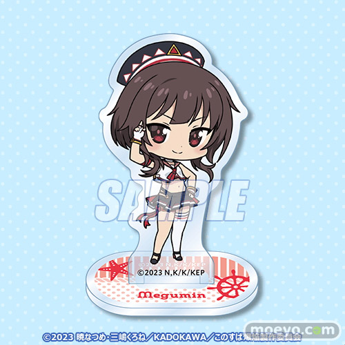 商品はめぐみんとゆんゆんの新規描き下ろしイラストを含むオリジナルグッズとなります。二人の「マリンルック」をテーマに描いた描き下ろしイラストの商品や、ミニキャライラストを使用した商品など豪華景品が盛りだくさん!! また期間中に“リツイートキャンペーン”として、くじ引き堂のTwitter公式アカウントをフォロー&リツイートすると、抽選で3名様に「B賞 アクリルスタンドフィギュアセット」をプレゼント!!