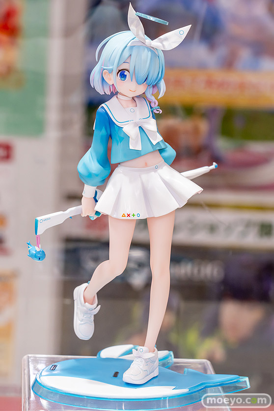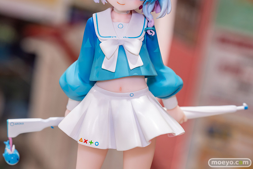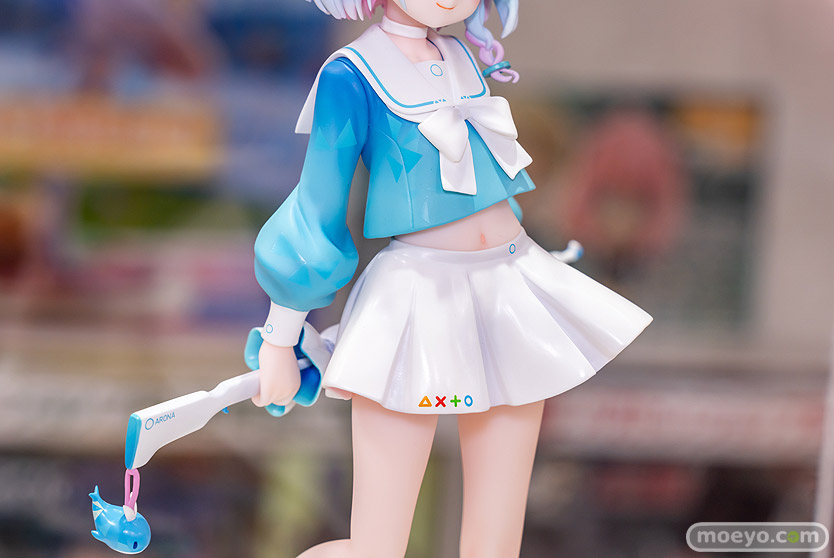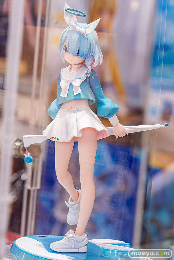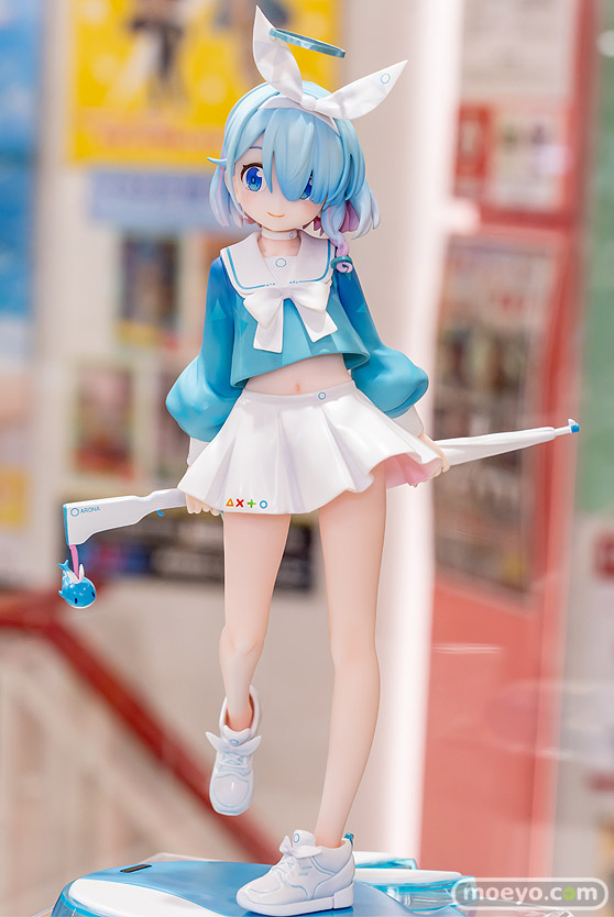 GOLDENHEADの新作美少女フィギュア「ブルーアーカイブ「アロナ」」の、おそらく製品版同等と思われるPVC製の彩色サンプルが、アキバのボークスホビー天国2で展示!『Yostarが贈る大人気アプリゲーム『ブルーアーカイブ』より、「シッテムの箱」のシステム管理者「アロナ」が待望のフィギュア化です!透明感がありつつもキュートな出で立ち、水のような美しい髪の毛、透き通るような青と爽やかな白の映える制服、傘型銃の“クジラのチャーム”まで完全再現いたしました。』というもので、原型制作は目出ル金さん、サウザンドさん。彩色はnamojiさん。制作協力はアリスグリントさん。Concept design・IllusrationはHwansangさん。その展示の様子を画像レビューとしてお伝えします!