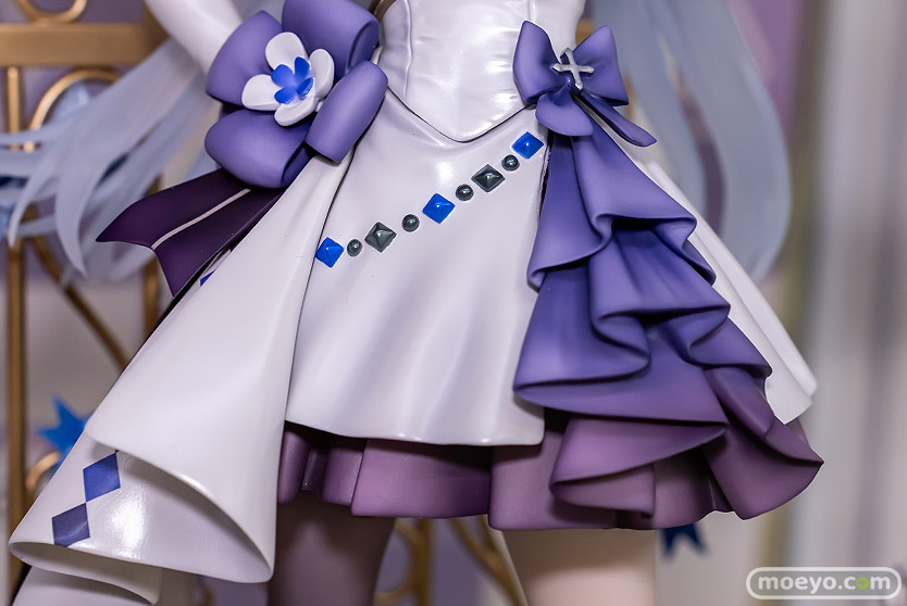うさぎモチーフのコスチューム、左手を差し出すポーズなど、おなじみのイラスト通りに立体化しています。サテンのような艶を持つドレスは造形にもこだわりました。優雅なドレープ、可愛い両耳や尻尾、光る腰元の宝石。細部まで妥協のない、完璧主義の彼女にふさわしい出来栄えです。