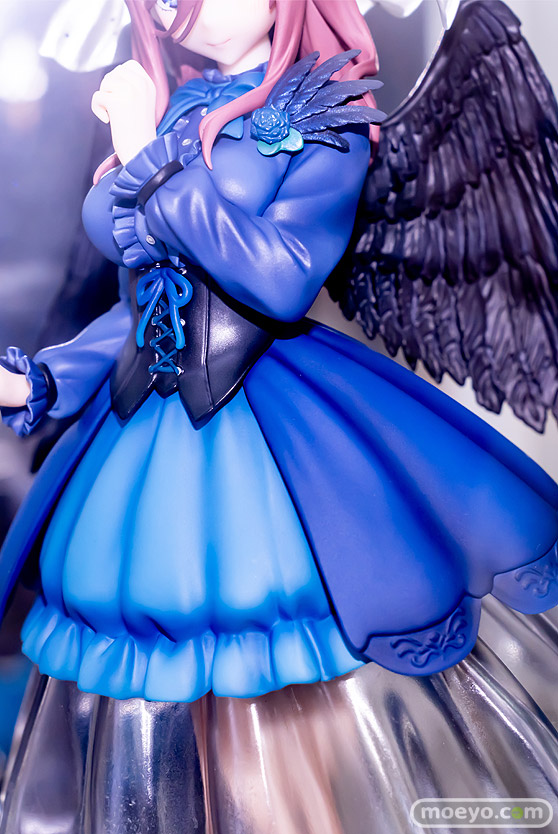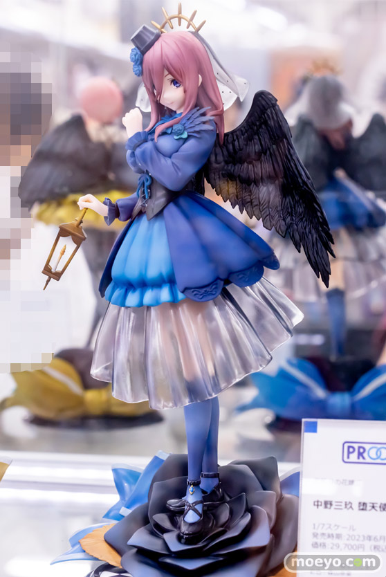 2023年6月に発売されたばかりのPROOF新作美少女フィギュア「五等分の花嫁∬ 中野三玖 堕天使ver.」の、おそらく製品版同等のPVC製と思われる彩色サンプルが、あみあみ 秋葉原ラジオ会館店で展示!『堕天使をイメージした衣装を身にまとった描き下しイラストを立体化いたしました。内気ながらもまっすぐに見据える瞳が印象的です。シアーなドレスや黒く染まった堕天使の翼、手元のランプも細かく表現いたしました。台座は堕天使のイメージに合わせた黒い薔薇とイメージカラーの青を使用したリボンで飾りました。』というもので、原型制作は榎本うに子さん。彩色は森山奈菜さん。制作協力はアリスグリントさん。その展示の様子を画像レビューとしてお伝えします!