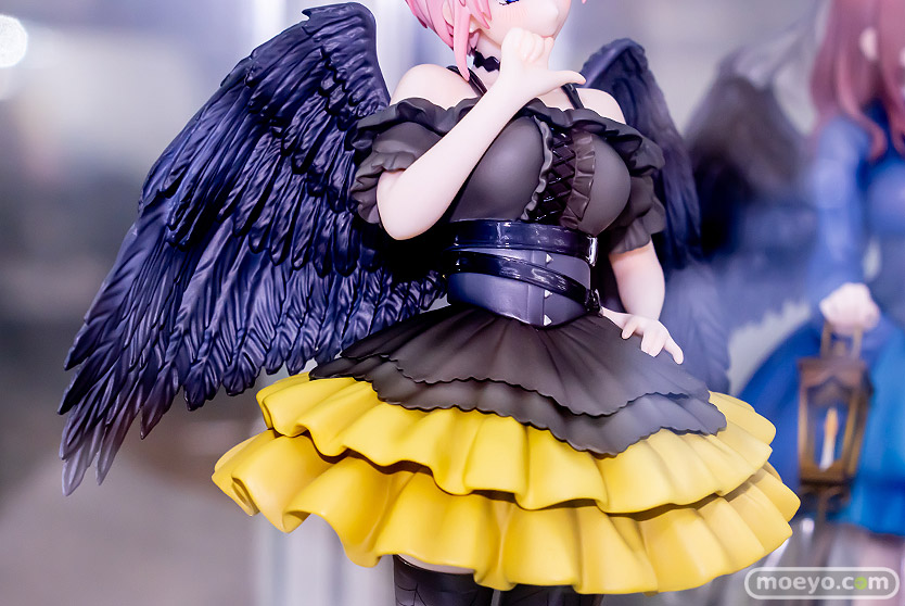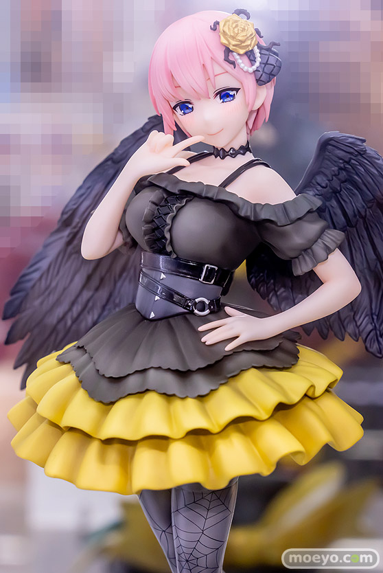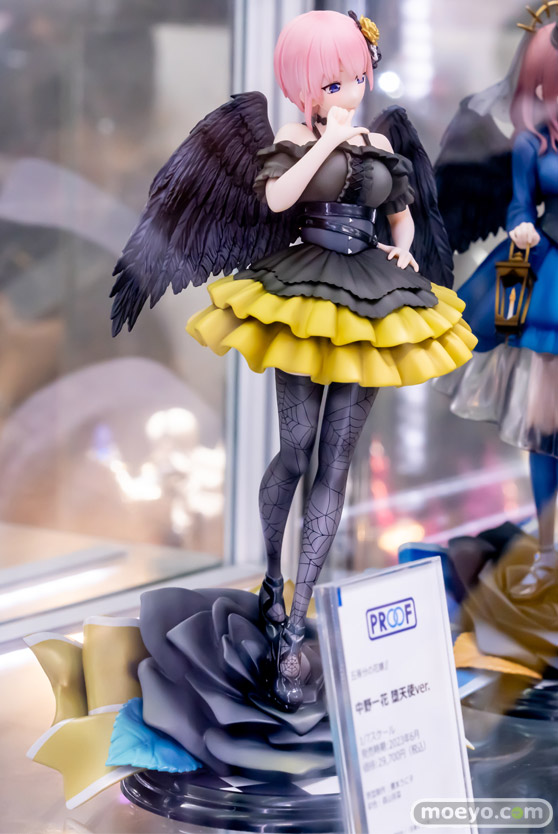 2023年6月に発売されたばかりのPROOF新作美少女フィギュア「五等分の花嫁∬ 中野一花 堕天使ver.」の、おそらく製品版同等のPVC製と思われる彩色サンプルが、あみあみ 秋葉原ラジオ会館店で展示!『堕天使をイメージした衣装を身にまとった描き下しイラストを立体化いたしました。口元に指を寄せた柔らかい表情と、しなやかなポージングが印象的です。フリルの広がりや黒く染まった堕天使の翼、タイツの模様も細かく表現いたしました。台座は堕天使のイメージに合わせた黒い薔薇とイメージカラーの黄色を使用したリボンで飾りました。』というもので、原型制作は榎本うに子さん。彩色は森山奈菜さん。制作協力はアリスグリントさん。その展示の様子を画像レビューとしてお伝えします!