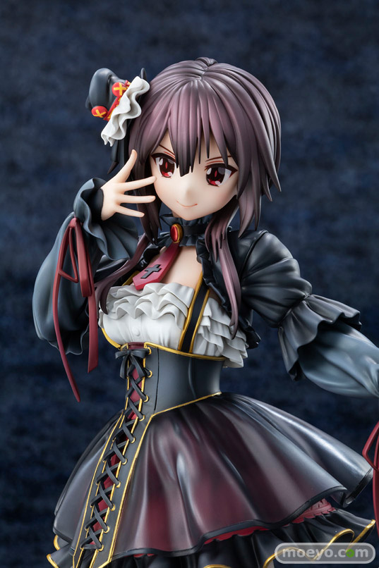 KADOKAWAの新作美少女フィギュア「『この素晴らしい世界に爆焔を!』めぐみん ゴスロリver.」が予約受付開始!『アニメ「この素晴らしい世界に爆焔を!」より、主人公のめぐみんを1/7スケールでフィギュア化。フィギュア用の描き下ろしイラストをモチーフに立体化いたしました。黒を基調としたオリジナルのゴスロリ衣装は、高貴さを感じつつも可愛らしいデザイン。めぐみんらしい表情+決めのポーズと合わさり、中二感満載の一品となっております。』というものです!そのサンプルの様子を画像レビューとしてお伝えします!