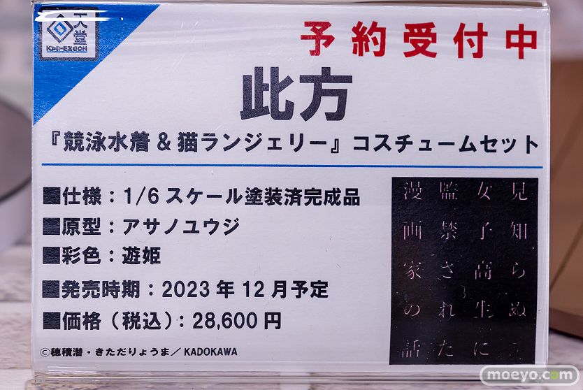 「此方」「柾見ちえ」「水原千鶴」など 秋葉原の新作フィギュア、グッズ展示の様子「ボークスホビー天国2」編(2023年7月1日)2023年7月1日の秋葉原での新作、製品版フィギュア、グッズ展示の様子を3回に分けて画像レビューとしてお伝えします!こちらでは画像の「見知らぬ女子高生に監禁された漫画家の話 此方 『競泳水着&猫ランジェリー』コスチュームセット」や「爆乳牛娘 牛尾メグ illustrated by 柾見ちえ」「『彼女、お借りします』水原千鶴 猫コスver.」など「ボークスホビー天国2」での展示の様子を。