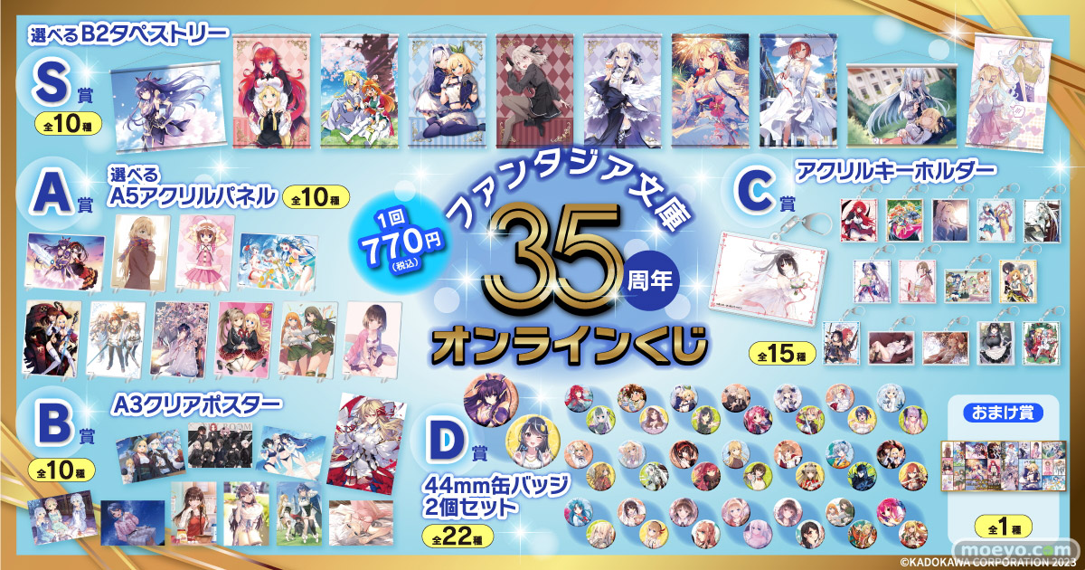 株式会社KADOKAWAは、運営するオンラインくじサービス「くじ引き堂」において、ファンタジア文庫人気タイトルのオリジナル商品が手に入る<ファンタジア文庫35周年記念オンラインくじ>を、2023年7月20日(木)12時より販売します。【KADOKAWA】
