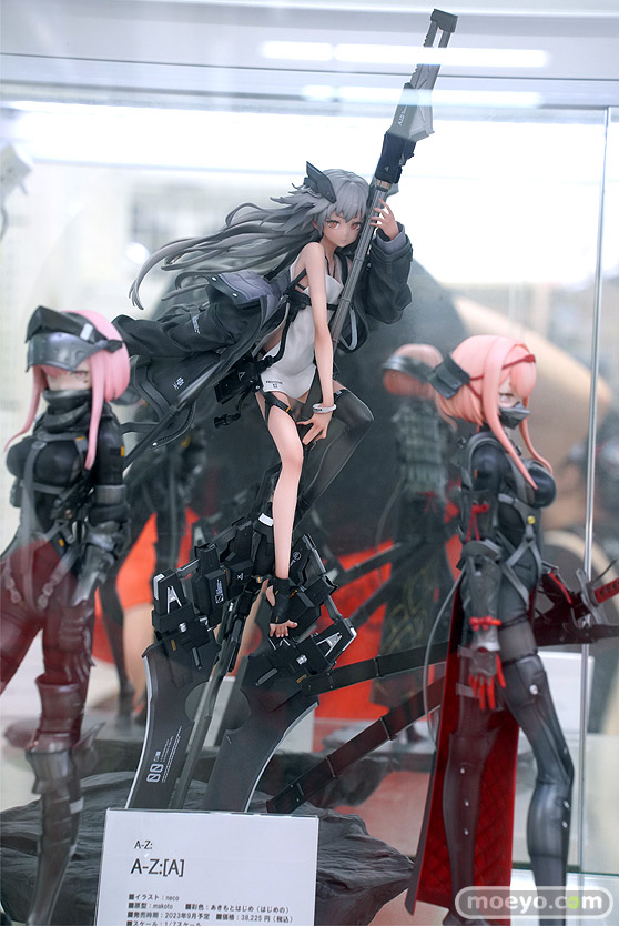 2023年9月発売予定のウイング新作美少女フィギュア「A-Z:[A]」の、おそらくPVC製と思われる彩色サンプルが、あみあみ 秋葉原ラジオ会館店で展示!『neco氏が手掛ける『A-Z:』シリーズより「A-Z:[A]」を立体化!イラストレーターneco氏が手掛けるオリジナルイラストシリーズ『A-Z:』より、「A-Z:[A]」を1/7スケールフィギュア化。イラストを忠実に再現し、特大の武器や風に吹かれる髪や服など細部に至るまで精巧に作り込みました。武器はガンメタリックの塗装を施し重厚感を表現、サイズも1/7スケールとは思えぬ迫力でどの角度から見ても動きがあり見どころ満載の仕上がりです。』というもので、原型制作はmakotoさん。彩色はあきもとはじめ(はじめの)さん。その展示の様子を画像レビューとしてお伝えします!