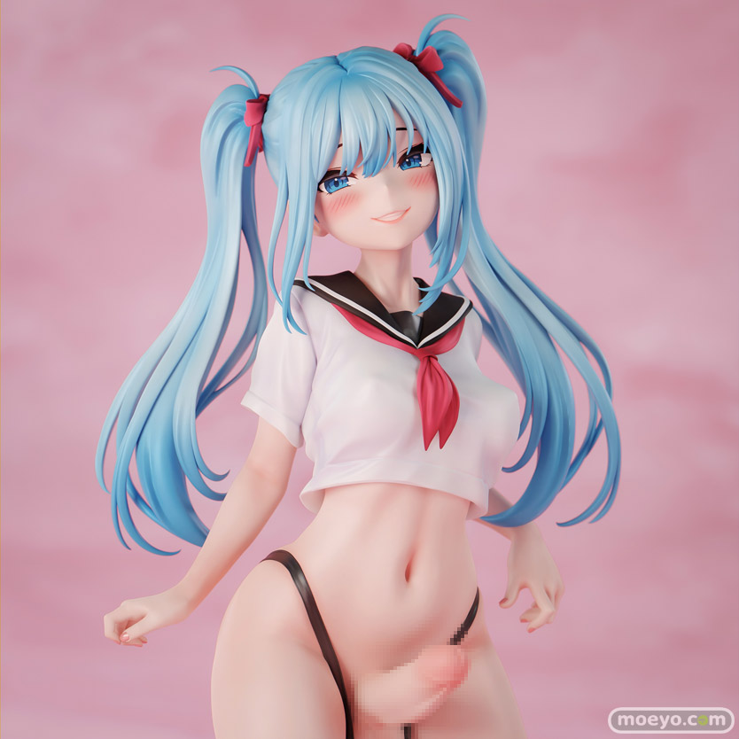青色の髪をツインテールにした「さな」は、セーラー服と男性器が同時に楽しめる倒錯的な姿で立体化。セーラー服の下で主張する胸の膨らみもポイントです。