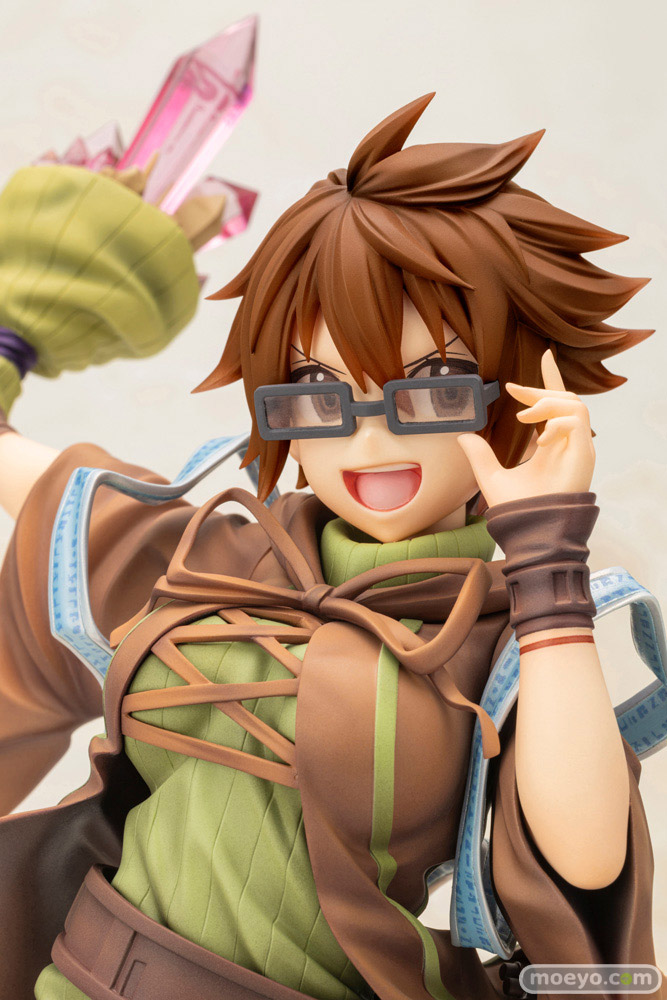 トレードマークの眼鏡や霊使い随一のプロポーションを誇る体躯、元気な表情など見どころ満載です。ポーズは魔法カード「憑依覚醒」のイラストをモチーフとしており、別売りの残り3人の霊使いを集めて、「憑依覚醒」を再現可能!