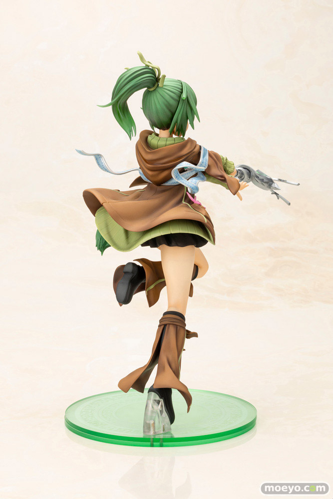 風に揺れるポニーテールや少しあどけなさの残る容姿、特徴的な形状の杖など見どころ満載です。ポーズは魔法カード「憑依覚醒」のイラストをモチーフとしており、残り3人の霊使いを集めて、「憑依覚醒」を再現可能!