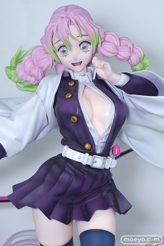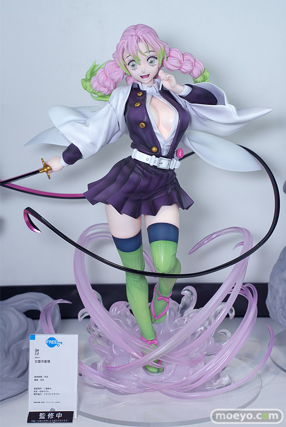 フリーイングの一部店舗販売限定となる美少女フィギュア「B-style 鬼滅の刃 甘露寺蜜璃 豪華版」が予約受付開始!『アニメ「鬼滅の刃」より、恋柱「甘露寺蜜璃」が1/4スケールフィギュアで登場です!軽やかな身のこなしを感じるよう、羽織の造形や特徴的な日輪刀の形状など、細部までポージングにも拘りました。抜群のプロポーションは勿論、愛らしい笑顔にもご注目ください。』というもので、豪華版に付属するエフェクトは、ハートのシルエットに見える特別仕様となっています!原型制作は二橋孝次さん。制作協力はドラゴンクラフトさん。彩色は松田モデルさん。「ワンホビギャラリー2023 SPRING」の会場で展示されていた彩色サンプルの様子を、画像レビューとしてお伝えします!