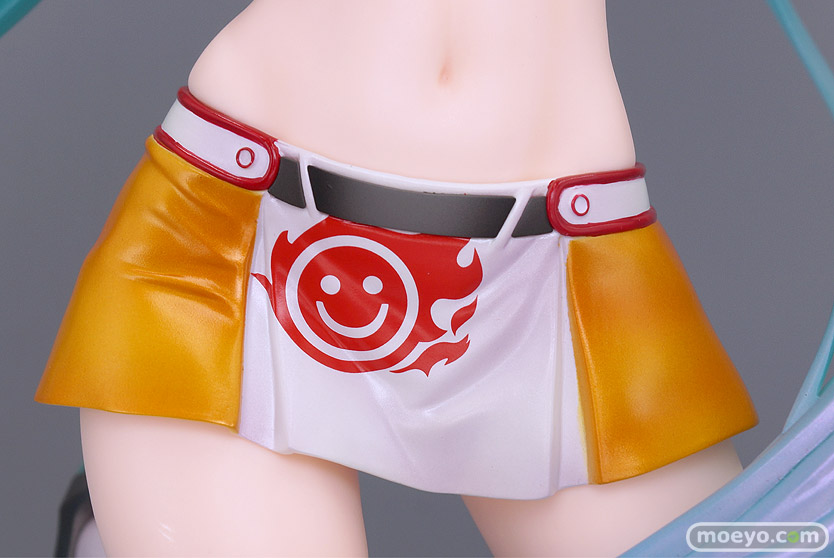 『初音ミク GTプロジェクト 100戦記念 オムニバスアート企画』のラスト11人目として、人気漫画家の矢吹健太朗氏が描いた「レーシングミク 2010Ver.」のイラストが1/7スケールでフィギュア化!イラストの肉感や髪の毛の繊細な描写など細部までこだわった見応えのある造形で立体化いたしました。髪の毛にはクリアパーツを使用して、表面には2色のパール塗装で繊細な彩色を施しました。健康的な脚やお腹周りの造形は必見です。