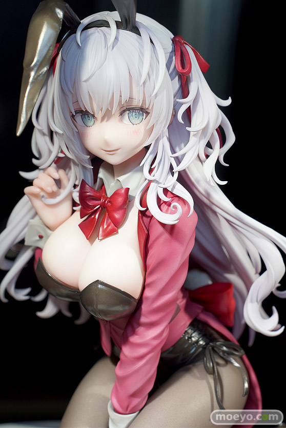 BARで跪き、恥ずかしがるバニーちゃんを細かく丁寧に再現いたしました。大胆且つ繊細なロングヘアー、両腕で挟まれ強調された胸、少し物欲しげなポーズは必見です!全体的な色使いはもちろん、繊細な色味で表現した瞳、一部クリアパーツを使用した髪の毛の彩色など、ももこ氏の作品の魅力を最大限に詰め込みました。