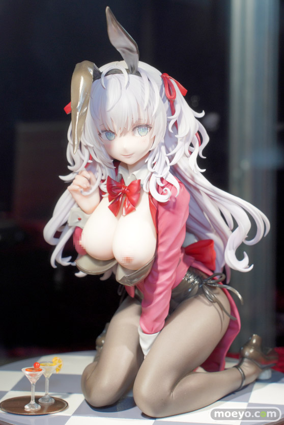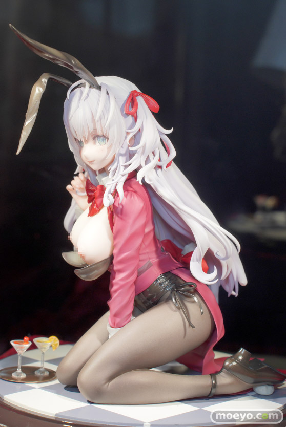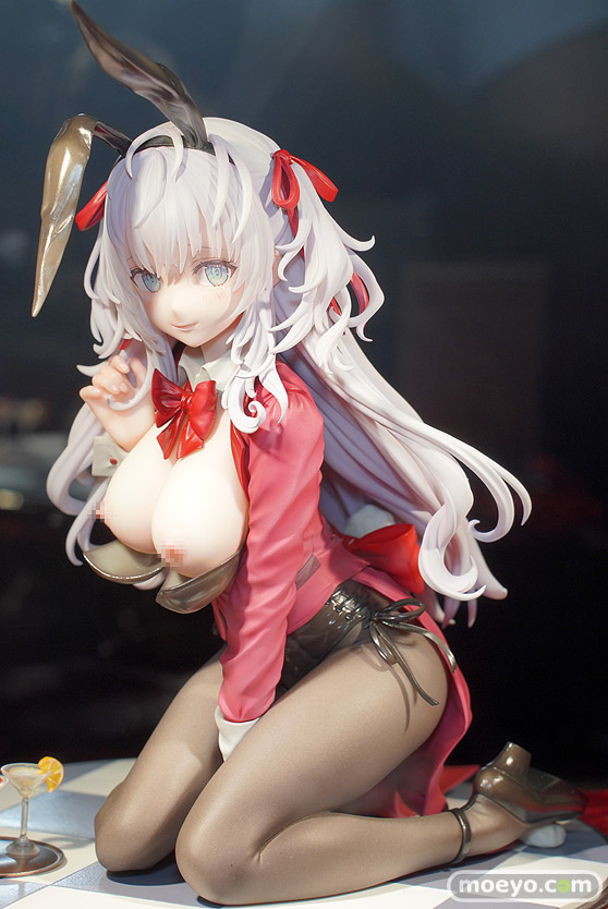 ノクタナスの新作エロフィギュア「ももこ画集 arietta バニーちゃん illustration by ももこ」が予約受付中です!『人気イラストレーターももこ氏の画集『arietta』より、「バニーちゃん」が登場!BARで跪き、恥ずかしがるバニーちゃんを細かく丁寧に再現いたしました。大胆且つ繊細なロングヘアー、両腕で挟まれ強調された胸、少し物欲しげなポーズは必見です!全体的な色使いはもちろん、繊細な色味で表現した瞳、一部クリアパーツを使用した髪の毛の彩色など、ももこ氏の作品の魅力を最大限に詰め込みました。』というもので、胸部分は差し替えパーツでポロリも可能!原型制作はYuki+ゆーも(モワノー)さん。彩色製作はモワノーさん。「ワンダーフェスティバル2023 [夏] 」の会場で展示されていた彩色サンプルの様子を、午後の展示切り替えでおっぱいが丸出しとなった状態も含め、画像レビューとしてお伝えします!(アダルトフィギュアとなります!18歳未満の方は閲覧をお控えください。)
