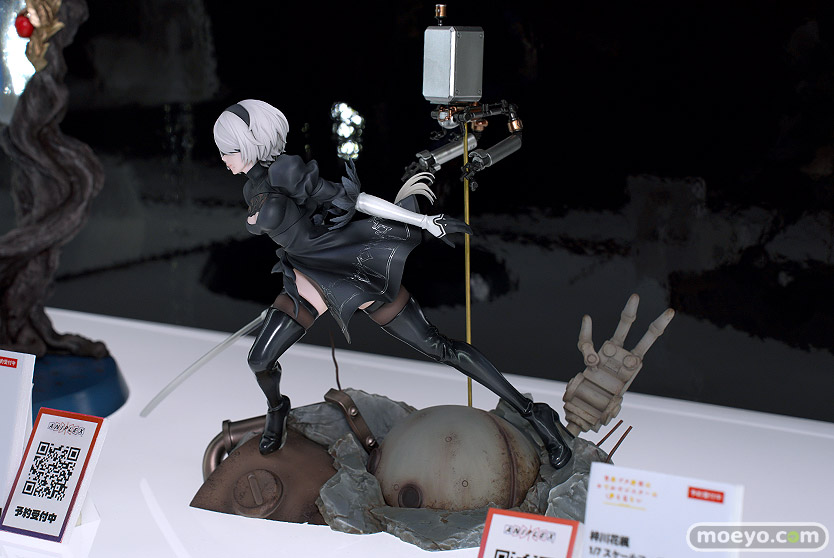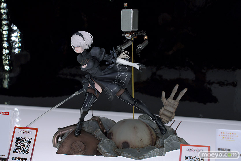 アニプレックスの新作美少女フィギュア「NieR:Automata Ver1.1a 2B」の彩色サンプルが、「メガホビEXPO2023 It’s SHOW TIME!!」の会場で展示!『TVアニメ「NieR:Automata Ver1.1a」より、2Bが1/7スケールフィギュアで登場。このフィギュアのためだけに描き下ろされたイラストを元に戦闘中に靡くスカートや、印象的なブーツの質感など、細部まで細やかに立体化。豪華版では、2Bのほかにヴィネット風の瓦礫ベースと随行支援ユニットポッド042がセットになったプレミアムフィギュアとなります。』というものです!その展示の様子を画像レビューとしてお伝えします!