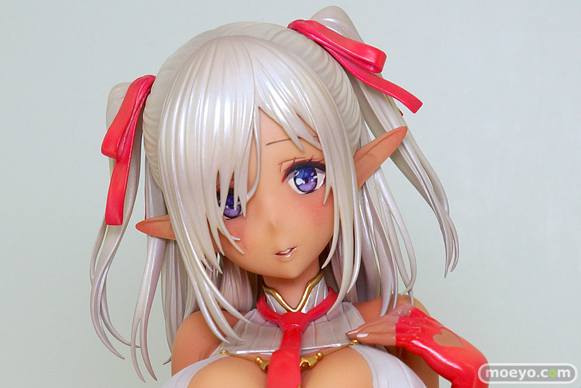 あみあみ×AMAKUNIの新作美少女フィギュア「大褐色時代 チョコエルフ」が予約受付開始!『魔太郎氏デザインのチョコエルフちゃんがAMAKUNI「大褐色時代」シリーズに仲間入り!スカートをつまんでこちらに微笑む姿にて立体化。美しい褐色肌はもちろん、衣装の下に抑えられた窮屈そうな胸元やハート模様から覗く肌が目を引くニーソックス等、魔太郎氏のイラストを徹底的に再現。リボンと可愛い髪やスカートをつまむ指、隙間から見える金の下着やチャームポイントのエルフ耳に至るまで細かく造形し魅力を追求!』というもので、原型制作は橋本涼さん。彩色はあきもとはじめ(はじめの)さん。製品版では差し替えパーツによって、より甘い誘惑姿が再現可能!「ワンダーフェスティバル2023 [夏] 」の会場で展示されていた彩色サンプルの様子を、画像レビューとしてお伝えします!