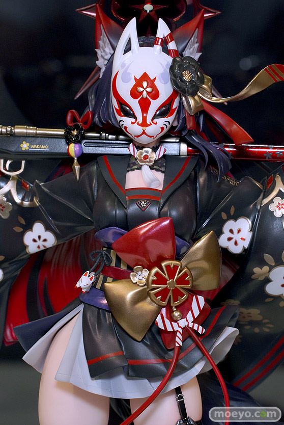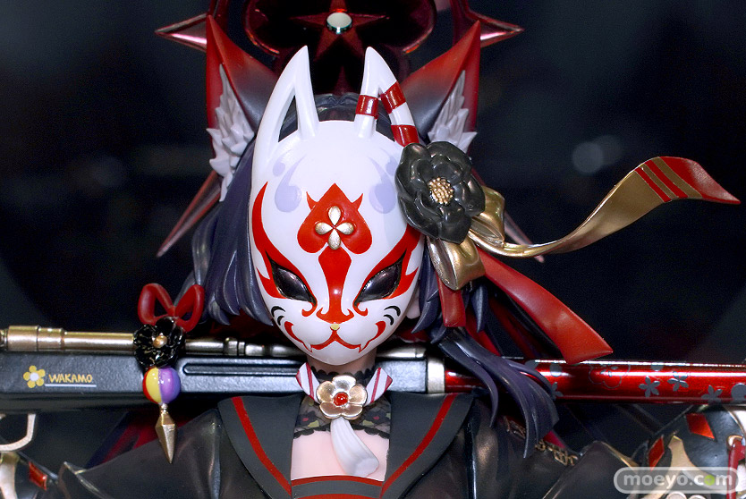 ネオンマックスの新作美少女フィギュア「ブルーアーカイブ-Blue Archive- ワカモ」が予約受付開始!『人気ゲーム『ブルーアーカイブ-Blue Archive-』よりワカモが1/7スケールフィギュアで登場!細かい装飾や華やかなデザインを忠実に再現し、耳の先から尻尾の先まで丁寧に仕上げました!差分パーツとして、お面を外した通常顔の他にハート目のお顔もございます!』というもので、原型制作はムタさん。デザイン/イラストはNAMYOさん。彩色は緋色(scarlet)さん。社内監修は古月さん。「ワンダーフェスティバル2023 [夏] 」の会場で展示されていた彩色サンプルの様子を、画像レビューとしてお伝えします!