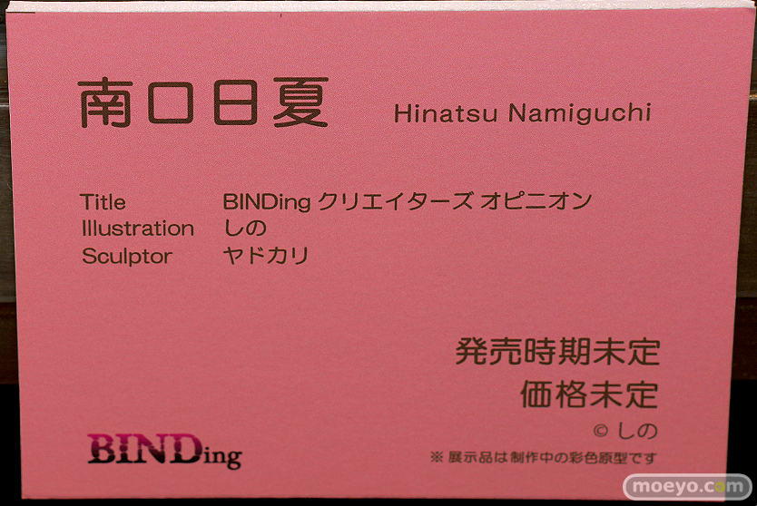 BINDingの新作エロフィギュア「BINDing クリエイターズ オピニオン 南口 日夏 バニーVer.」の制作中彩色サンプルが、「第5回 ネイティブグループ合同展示会(エロホビ)」の会場で展示!『スポーティにアレンジされたオリジナルのバニースーツに身を包み絶賛配信中の日夏ちゃん。多くのファンに囲まれてあれやこれやでサービス度も徐々にヒートアップ!自撮りからのサービスショットまで、支えてくれるファンの声に応えるのが日夏ちゃんです。』という、しのさんのイラストを立体化したもので、原型制作はヤドカリさん。その展示の様子を画像レビューとしてお伝えします!(アダルトフィギュアエリアでの展示アイテムとなります!18歳未満の方は閲覧をお控えください。)