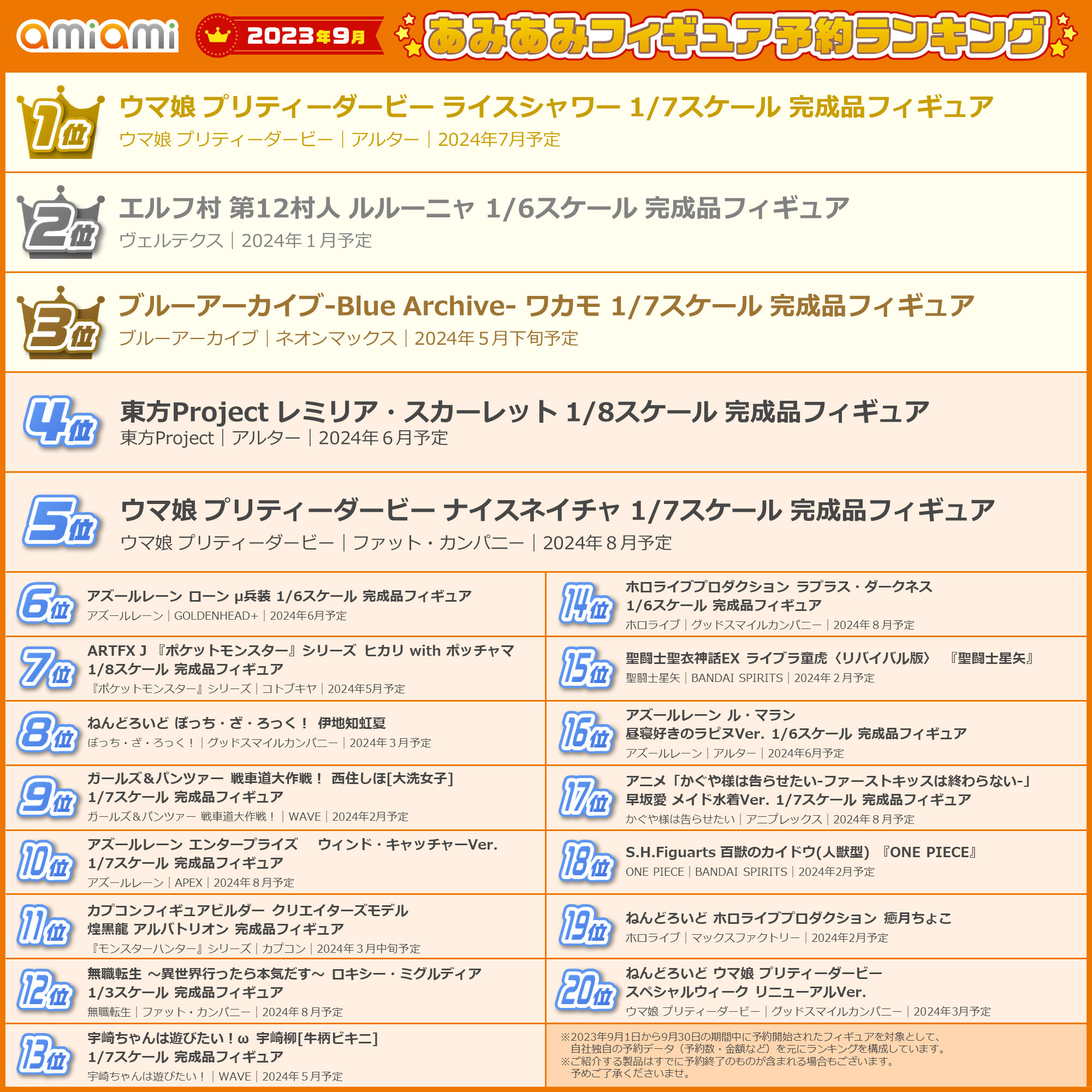 ※2023年9月1日から9月30日の期間中に予約開始されたフィギュアを対象として、自社独自の予約データ(予約数・金額など)を元にランキングを構成しています。