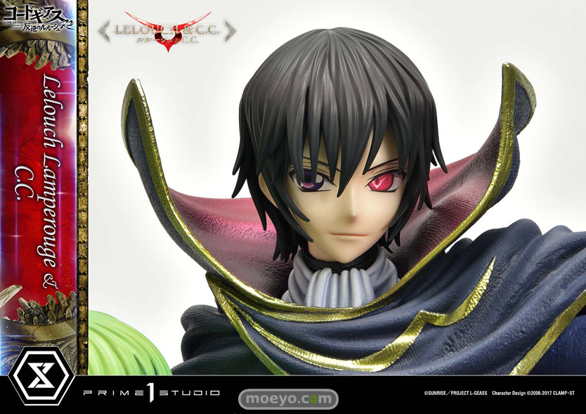 明日を求める少年、悠久を生きる魔女。TVアニメ『コードギアス 反逆のルルーシュ R2』から、ルルーシュ・ランペルージとC.C.が登場!明日を得るために共犯関係を結ぶルルーシュとC.C.、ふたりが寄り添う姿を精巧に立体化しました。親密ながら依存し過ぎない身体の距離感、絶妙に異なる視線の先、シンメトリーに広がるマントと髪。デザイン・構図にこだわり、その関係性を表現しています。もちろん各部のディテールも細部まで追求。ルルーシュの左目に宿るギアスや髪を遊ばせるC.C.の指先など、あらゆる箇所に造形の妙を感じていただけるでしょう。【株式会社プライム1スタジオ】