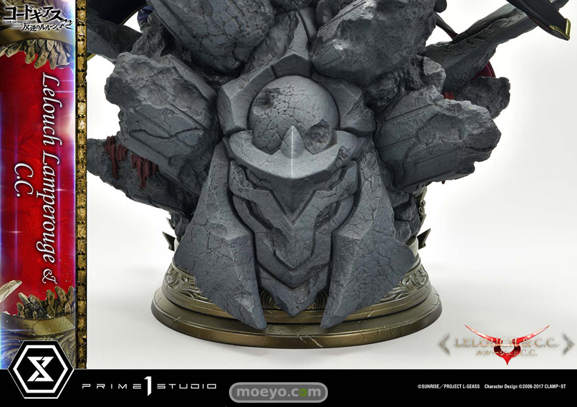 また特製ベースは神根島の遺跡やCの世界にインスパイアされたもの。金色に輝く黒の騎士団の紋章、岩肌に刻まれた蜃気楼、たなびくマントと広がった翼とスタチュー全体で象られたギアスマークのアウトライン。さまざまな意匠をお楽しみください。