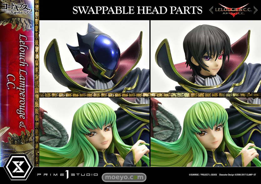 ディスプレイの雰囲気を変える、差し替え用の頭部パーツもご用意しました。仮面の男ゼロとして黒の騎士団を率いるルルーシュ。いたずらな笑みを投げるC.C.。いずれもイメージ通りの仕上がりです。