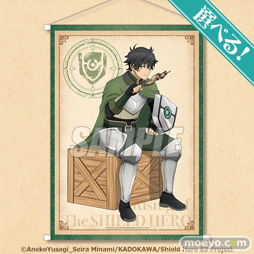 商品は尚文、ラフタリア、フィーロの3人が旅の途中で休息をとっているところをテーマにした、新規描き下ろしイラストや、各キャラの描き起こしミニキャライラストを使用したオリジナルグッズとなります。素敵なイラストを堪能できるB2サイズのタペストリーや、デスクなどに飾れるアクリルスタンドフィギュアなど、くじ引き堂でしか手に入らないオリジナルグッズを多数ご用意しております。