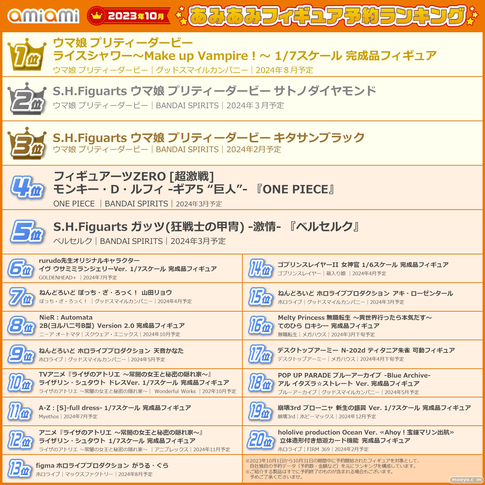 ※2023年10月1日から10月31日の期間中に予約開始されたフィギュアを対象として、自社独自の予約データ(予約数・金額など)を元にランキングを構成しています。