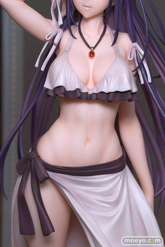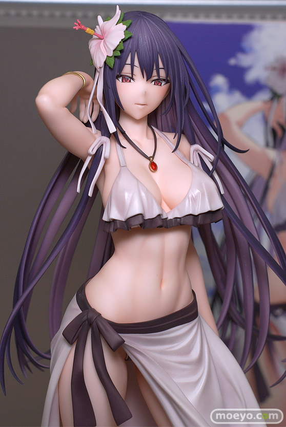 オーキッドシードの新作美少女フィギュア「『履いてください、鷹峰さん』鷹峰高嶺」が予約受付開始!『『月刊ガンガンJOKER』にて大人気連載中の柊裕一先生のコミック、『履いてください、鷹峰さん』より才色兼備の生徒会長 、鷹峰高嶺がまぶしいビキニ姿で登場!流れるように美しい髪、スタイル抜群の肢体、水着のフリルや皺など原型師 橋本涼氏によって細部にまで緻密に再現された珠玉の一品です!』というもので、原型制作は橋本涼さん。製品版ではパレオは着脱可能となっているようです。その展示の様子を画像レビューとしてお伝えします!