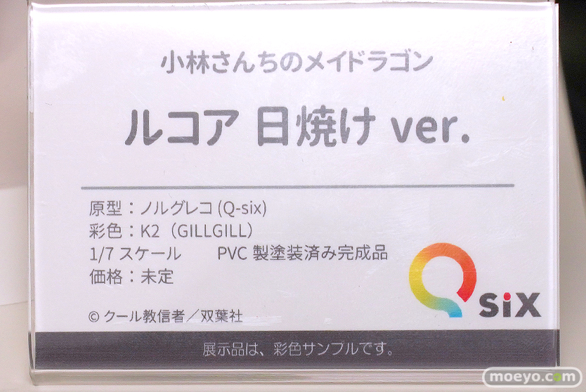 【宮沢展示会45】Q-six新作美少女フィギュア「小林さんちのメイドラゴン ルコア 日焼け ver.」彩色サンプルが展示!Q-sixの新作美少女フィギュア「小林さんちのメイドラゴン ルコア 日焼け ver.」の彩色サンプルが、「宮沢模型 第45回 商売繁盛セール」の会場で展示!通常版のウインク顔からにっこり笑顔に表情が変更し、さらに日焼け肌となったバリエーションモデルとなります。原型制作はノルグレコ(Q-six)さん。彩色はK2(GILLGILL)さん。その展示の様子を画像レビューとしてお伝えします!
