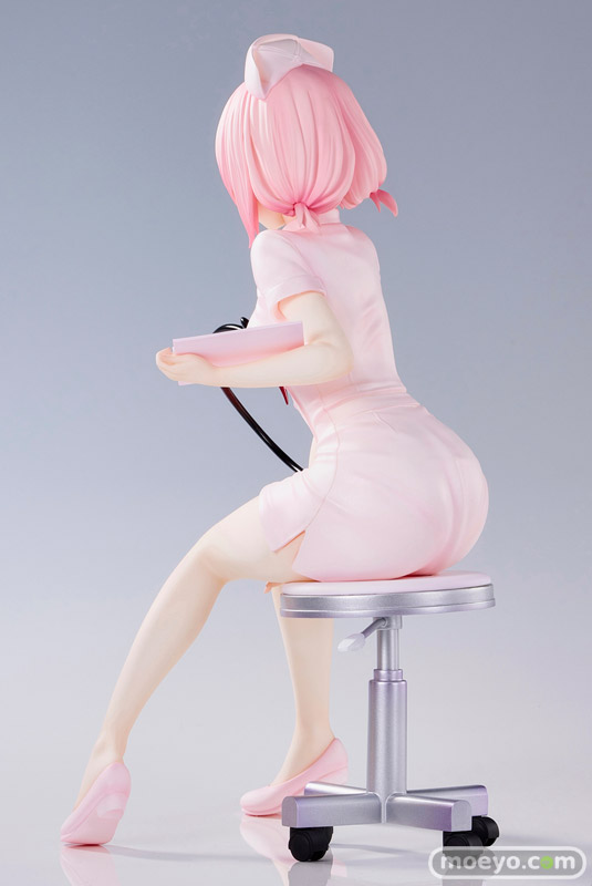 ユニオンクリエイティブの新作美少女フィギュア「To LOVEる-とらぶる-ダークネス モモ・べリア・デビルーク ナース・コス」が予約受付開始!『ナース衣装に身を包んだ「モモ」が登場!無防備に太ももの間に手を置き、患者(ユーザーの皆さん)のお話を聞いている、可愛らしい表情が愛らしい。ピンクパール塗装のナース服に包まれたボディはそのシルエットを生々しく表現!!』というもので、原型制作は赤べこさん。PAINTは森山奈菜さん。そのサンプルの様子を、画像レビューとしてお伝えします!