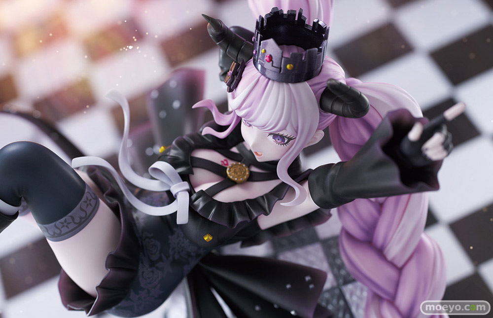 宙を舞っているような、浮遊感のあるポージングで「死に神ちゃん」を立体化いたしました。体の動きにあわせて表現された躍動を感じられるピンクのロングヘアや衣装の造形、装飾品も細かい部分まで徹底再現。
