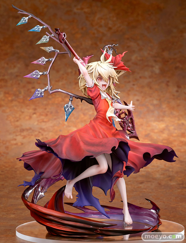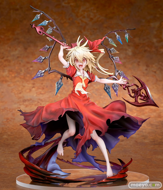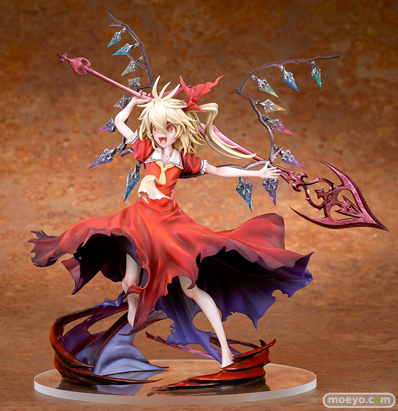 キューズQ新作美少女フィギュア「東方Project フランドール・スカーレット 紅魔城伝説版」予約受付開始!キューズQの新作美少女フィギュア「東方Project フランドール・スカーレット 紅魔城伝説版」が予約受付開始!『「東方Project」二次創作ゲーム「紅魔城伝説」から、シリーズ第四弾は禍々しい存在感を放つフランドール・スカーレットが登場!晩杯あきら氏によって大胆にデザインされた、ダークなアレンジを全力で造形しました。』というもので、原型制作はタカトリさん。彩色製作はアンドウケンジさん。キャラクターデザインは前述の通り晩杯あきらさん。そのサンプルの様子を、画像レビューとしてお伝えします!