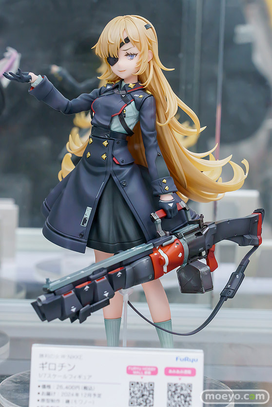 フリューの新作美少女フィギュア「勝利の女神:NIKKE ギロチン」の彩色サンプルが、あみあみ 秋葉原ラジオ会館店で展示!『背中で魅せるガンガールRPG『勝利の女神:NIKKE』のエクスターナー部隊所属のニケ「ギロチン」が、ゲーム内のLive2Dをもとに1/7スケールフィギュアになりました。』というもので、原型制作は磯(モワノー)さん。彩色制作はあきもとはじめ(はじめの)さん。その展示の様子を画像レビューとしてお伝えします!