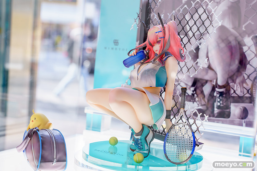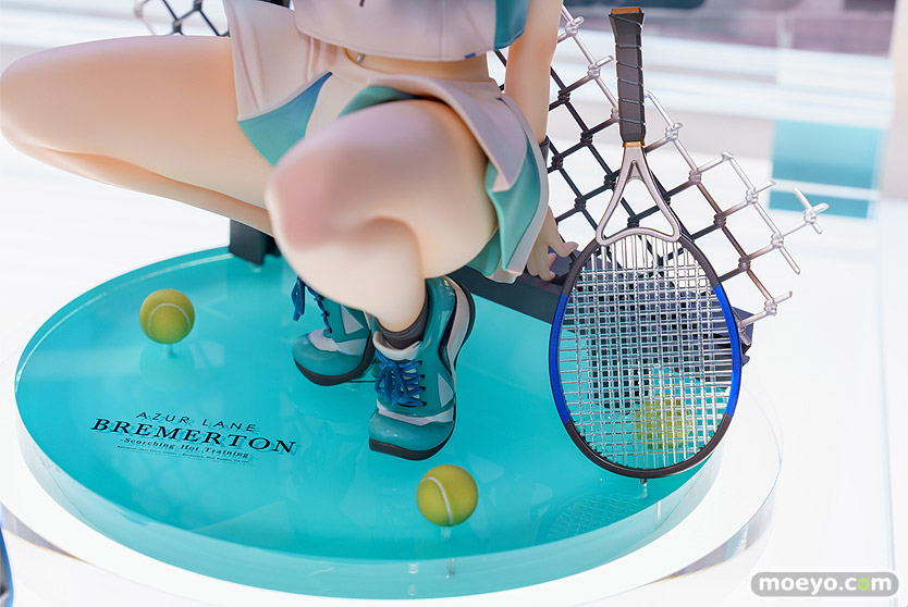 ミメヨイの新作美少女フィギュア「アズールレーン ブレマートン 熱々トレーニング」の、おそらく製品版同等と思われるPVC製の彩色サンプルが、東京フィギュアギャラリーで展示!『話題のテニスウェアスキン“熱々トレーニング”のブレマートンを1/7スケールでのフィギュア化となります。通常版は元イラストを再現した豪華仕様!!かわいい饅頭ちゃんも脱着可能で足元に置くことも可能です。』というもので、原型制作はヤドカリさん。制作協力は株式会社CREAMEさん。彩色は星名詠美さん。どことは言いませんがPVCサンプルでもちゃんと「シワ」の表現が入っていたそのサンプル展示の様子を画像レビューとしてお伝えします!