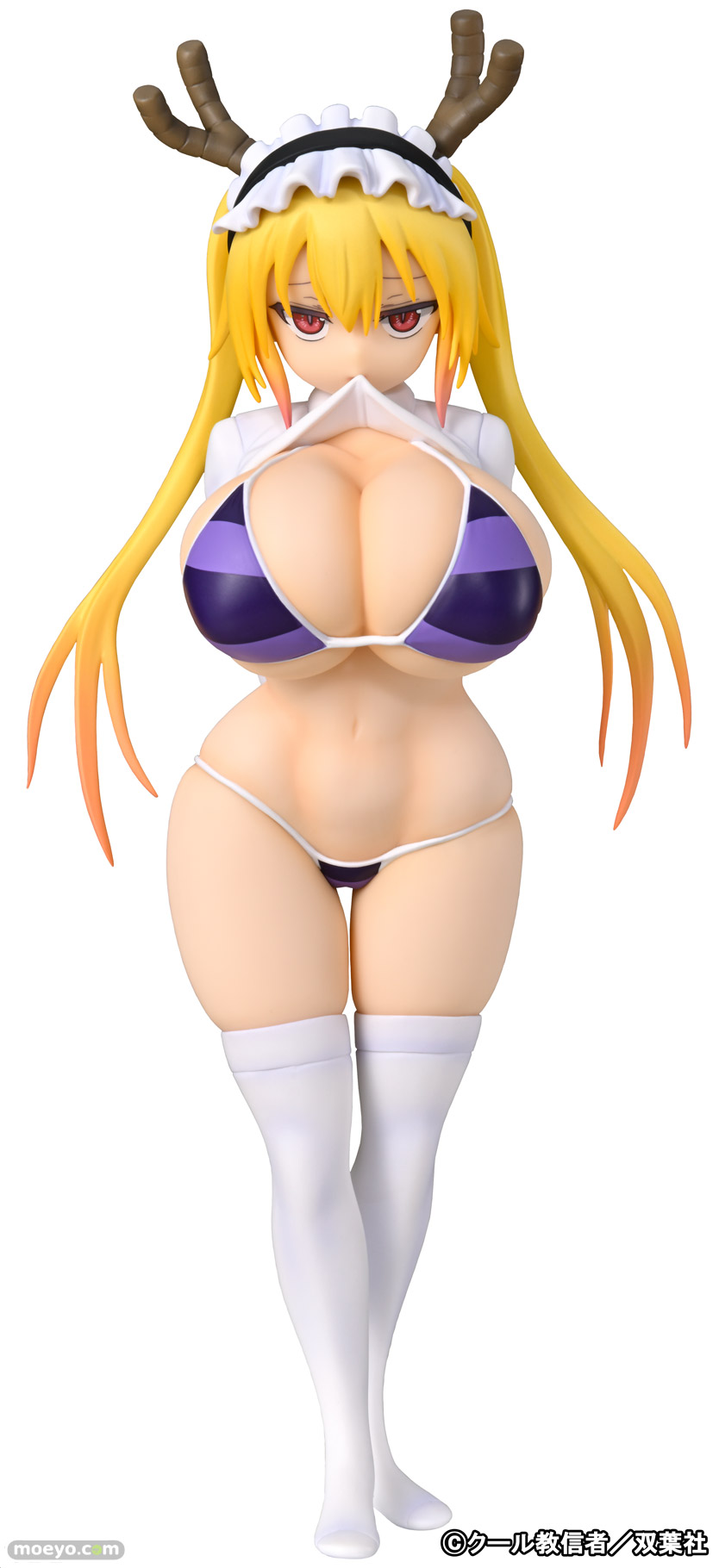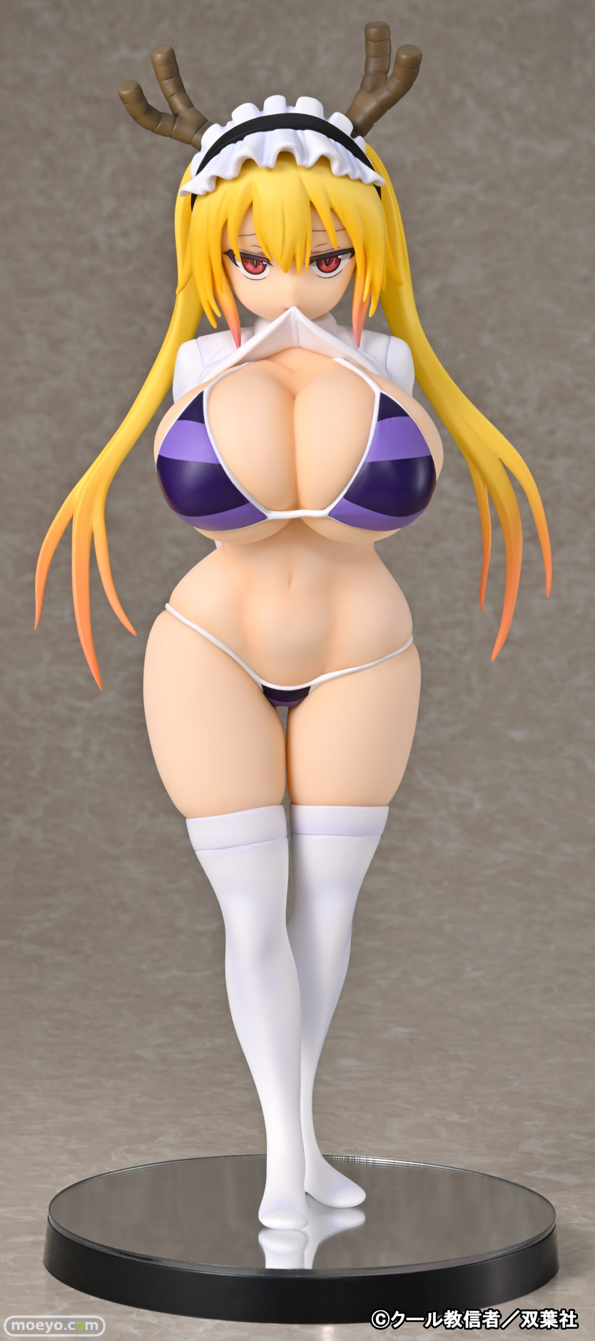 回天堂の新作美少女フィギュアの限定カラーバージョン「小林さんちのメイドラゴン トール リペイントVer.」が、2024年2月11日開催予定の「ワンダーフェスティバル2024 [冬]」の「あみあみホビーキャンプブース」にて販売決定!『2019年8月に発売された“公式”同人誌の表紙イラストをイメージした水着カラーに変更しフィギュアでも“公式同人”化(?)!』というもので、原型制作はみんへる(ブロンドパロット)さん。彩色は回天堂さん。制作協力はnishiさん。そのサンプルの様子を画像レビューとしてお伝えします!