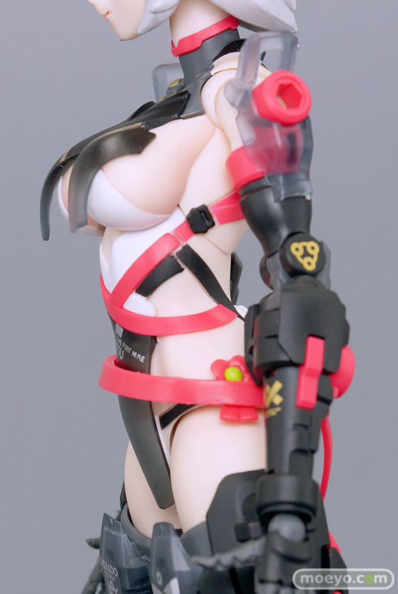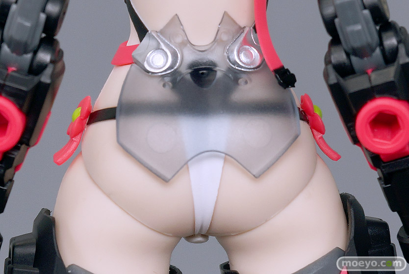 ▲脚部もかなりの情報量となっています。太もものメカ部分は半透明のパーツで少し透けた感じがいい感じです。ハイヒールっぽい足先の形状もかなり独特ですが、意外と自立性はいい方でした。(今回の撮影もすべて補助を使わず、自立させて行っています。)