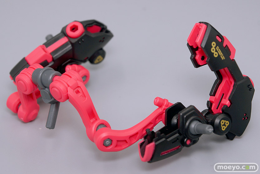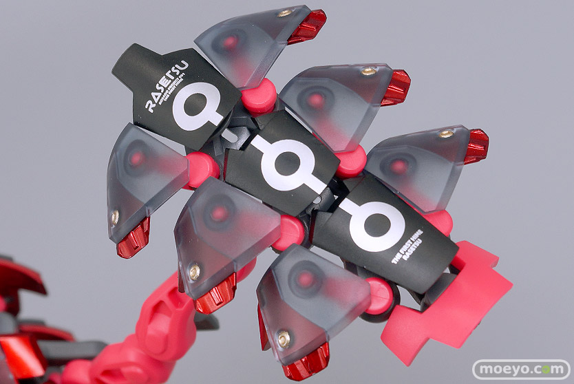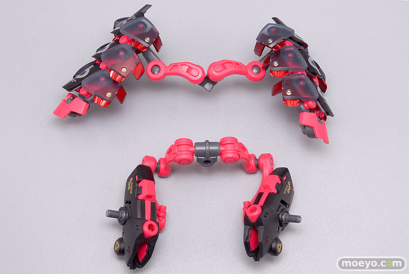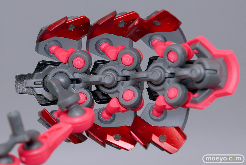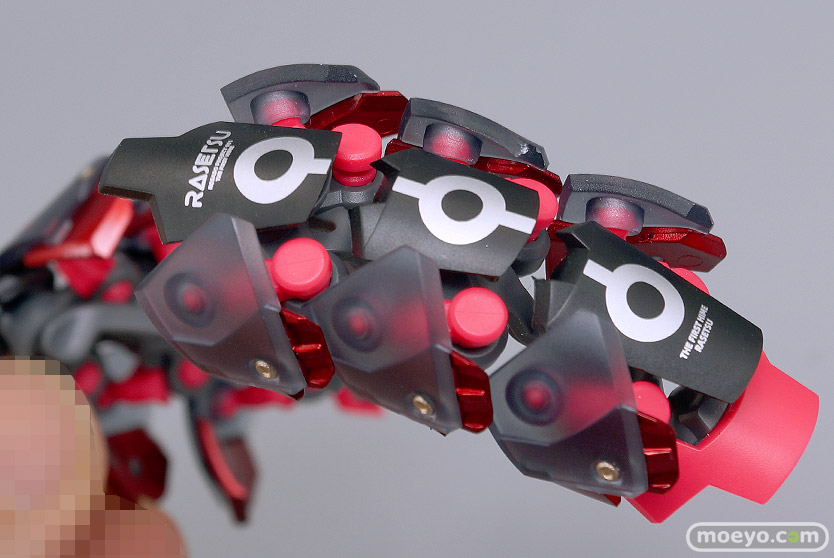 ▲腕部造形。鉄板のカッコイイ色合わせである「黒×赤」をベースに、情報量の多いメリハリのある形状となっています。