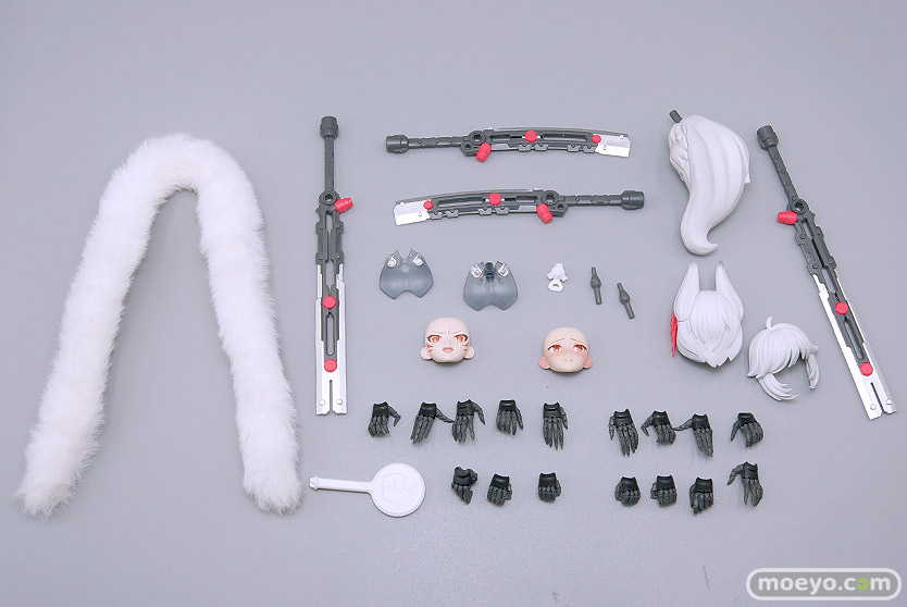 ・アホ毛のあり/なし、狐耳の生物/メカ、と各種デザインが異なる前後髪パーツが2セット付属し、組み合わせることで頭部造形のバリエーションが倍増。