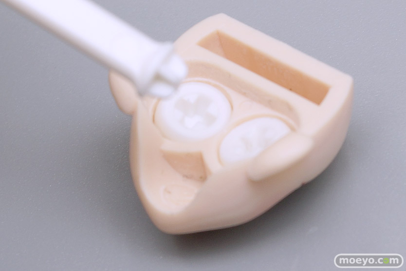 ▲頭部もABS製の軸に顔、後ろ髪、前髪を組み付ける形式。これによって比較的重い頭部もぐらつかずにぴたっと決まる保持力を有しています。