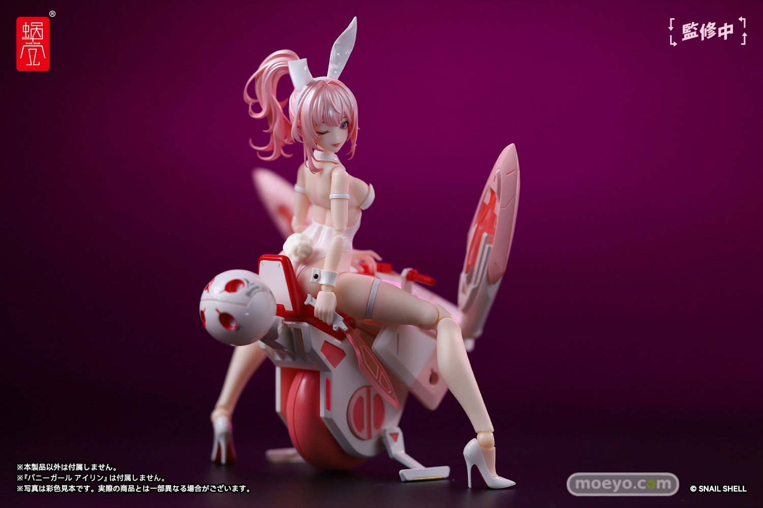 蝸之殼Snail Shellの新作アクションフィギュア「サイクロンバニー号&ギアセット」が予約受付開始!『バイクのカラーリングは「バニーガール アイリン(別売り)」と相まって、優しいピンクにパワフルなレッドが追加されております。2本のバニーシミターが付属しており、バイクのうさみみに納刀できます。「バニーガール アイリン(別売り)」に持たせてバトルポーズを決めるのもおすすめです。』というバイクフィギュア。そのサンプルの様子を画像レビューとしてお伝えします!