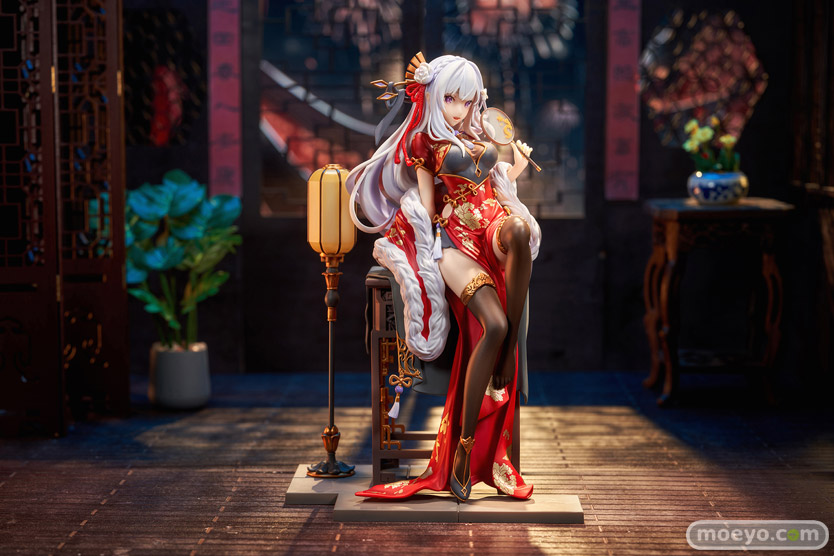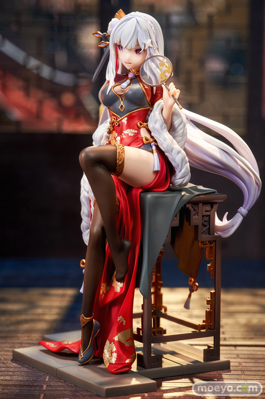 エミリアは、団扇でそっと隠す微笑、さらりと広がる髪のライン、片方だけ脱げた靴など、上品でいながら普段のエミリアとはどこか違った雰囲気が演出されており、見応え抜群な逸品に仕上がっています。いつもとひと味違う雰囲気をまとうエミリアを、ぜひお手元でご堪能ください。