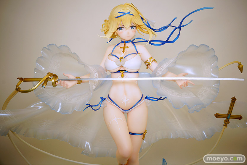 アリスグリントの新作美少女フィギュア「アズールレーン ジャンヌ・ダルク 蒼浪の映画聖女」が予約受付開始!『Yostarがおくる大人気アプリゲーム『アズールレーン』より、「ジャンヌ・ダルク 蒼浪の映画聖女」を1/7スケールでフィギュア化いたしました!溢れ出る透明感はもちろん、身体の聖痕まで忠実に再現いたしました。“海中”をモチーフにした台座や、細部までこだわった聖剣にもご注目♪』というもので、原型制作はもとおさん。原形制作協力は株式会社スパローさん。彩色は森山奈菜さん。「ワンダーフェスティバル2024 [冬] 」の会場で展示されていた彩色サンプルの様子を、画像レビューとしてお伝えします!