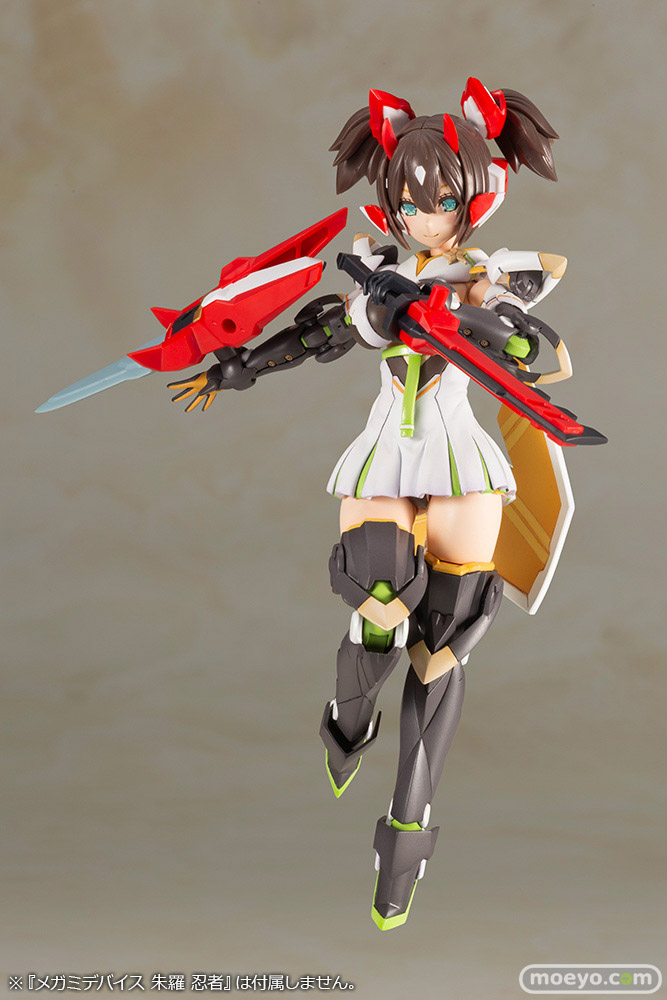 ・ジェネのキャラクターデザインを担当された『Nidy-2D-』氏が同じくデザインしたメガミデバイス『朱羅 忍者』『朱羅 弓兵』とは相互でフェイスパーツ、首のジョイントの互換性があり、プラモデルとしての遊びの幅が大きく広がります。