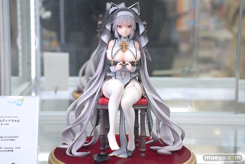 Solarainの新作美少女フィギュア「GuLucoオリジナルキャラクター アルヴィナちゃん シスターver.」の彩色サンプルが、あみあみ 秋葉原ラジオ会館店で展示!『GuLuco氏オリジナルキャラクター「アルヴィナ」ちゃんが、1/7スケールのシスターver.として登場!緋色の絨毯台座は高級なチャーチチェアと組み合わせて、全体的ににエレガントな雰囲気を醸し出しています。そして、シスター服に収まらない程のムチムチの体に、白ニーソの足裏等…見所満載です!』というもので、原型制作はZaneClayさん、SUHEさん。彩色はApostle使徒さん。その展示の様子を画像レビューとしてお伝えします!