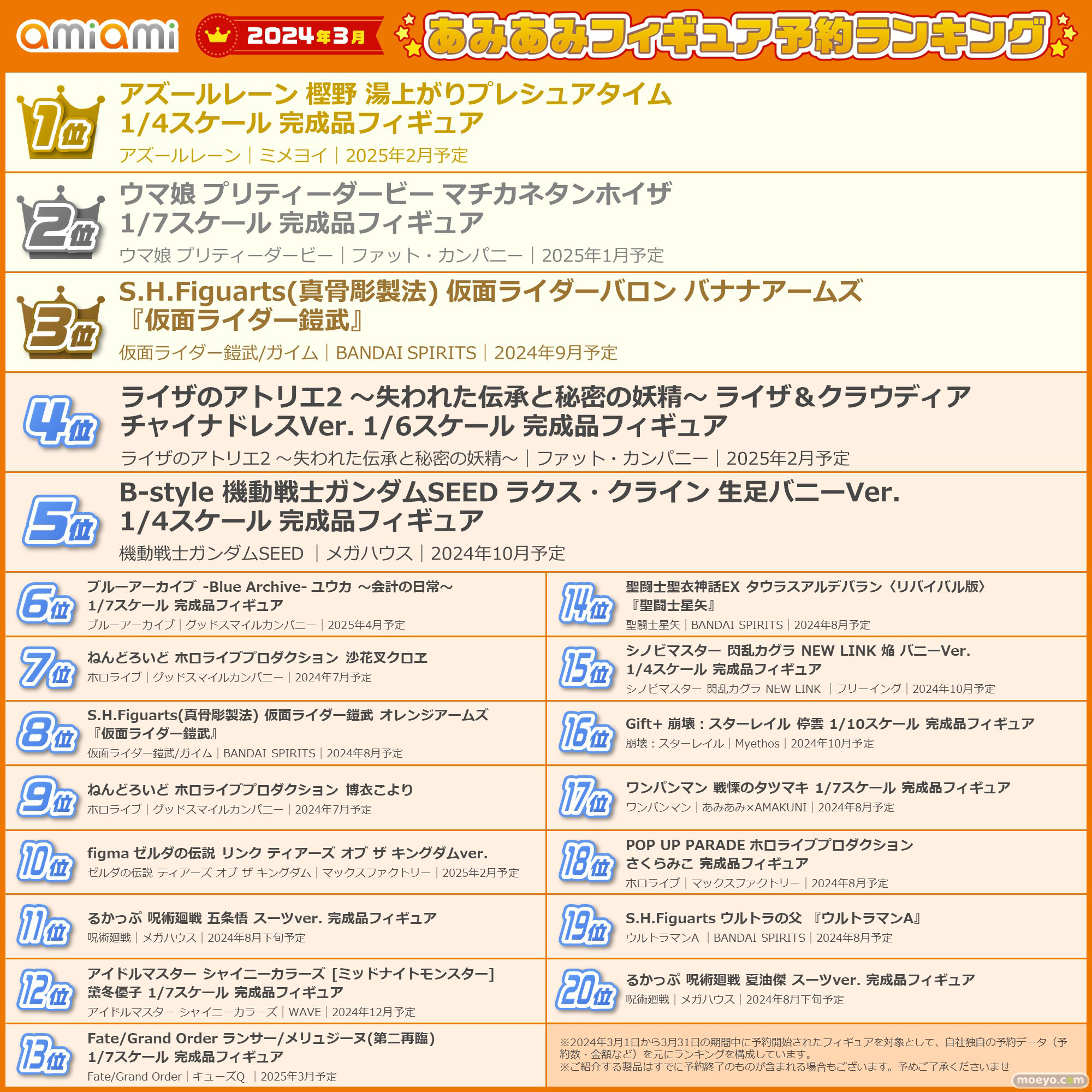 ※2024年3月1日から3月31日の期間中に予約開始されたフィギュアを対象として、自社独自の予約データ(予約数・金額など)を元にランキングを構成しています。