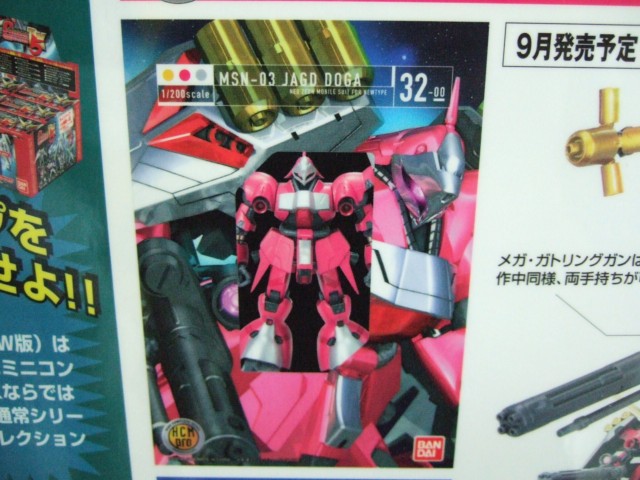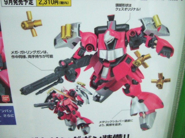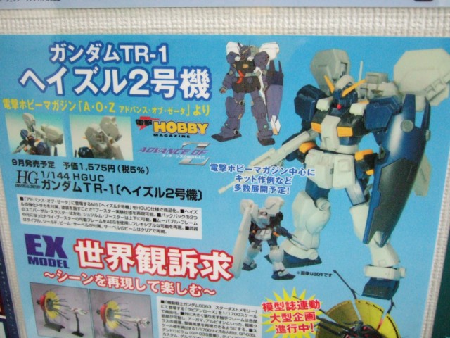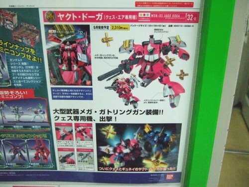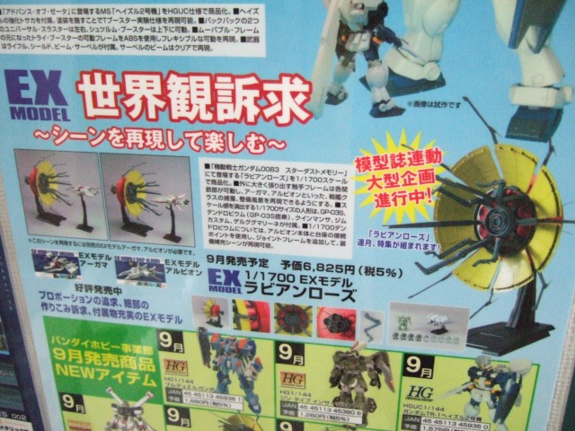 8月3日、キャラシティにて、「HCM-Pro32 ヤクト・ドーガ (クェス・エア専用機) 」(AA)や、「1/100 MG クロスボーンガンダムX-1 Ver.Ka 」(AA)、「1/144 HGUC ガンダムTR-1ヘイズル2号機」(AA)、「リアルロボットレヴォリューション 1/48 SPTレイズナー」(AA)など、バンダイの9月発売予定の新商品の紹介POPの掲示が開始していました。