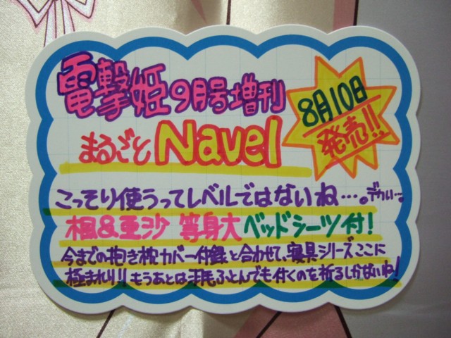 メロンブックスの店頭にて、8月10日発売予定の「電撃姫 増刊 まるごとNavel (ネーブル) スペシャル」(AA)に付属予定の「楓&亜沙 等身大ベッドシーツ」のサンプル展示が開始しています。取り付けられていたPOPによると「こっそり使うってレベルではないね・・・。デカぃ・・・〜中略〜もうあとは羽毛布団でもつくのを祈るしかないね!」とかかれていました。確かにこっそりは無理w