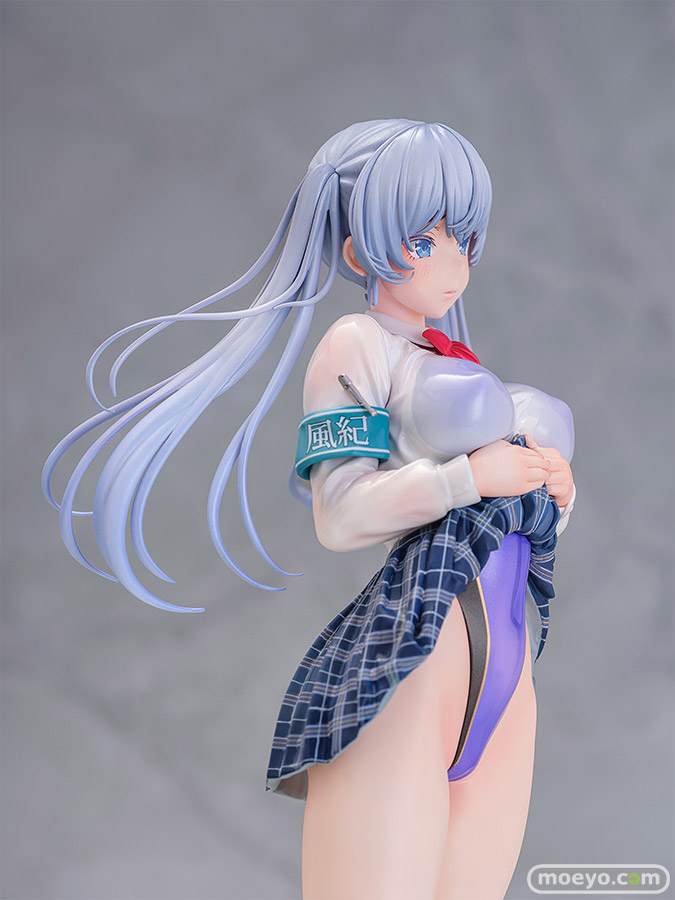 ロケットボーイの新作エロフィギュア「風紀委員さん」は予約受付開始!『人気イラストレーター、ゲンツキ氏が描く「風紀委員さん」を立体化。様々なシチュエーションを想像できる表情とポージングは必見です!制服が濡れて透けて見える水着や可愛い顔とは裏腹な腰回り等是非ご堪能ください。上半身と下半身は水着を着ていないバージョンの差し替えパーツも付属、』というもので、原型制作はにゃばーさん。「第7回 ネイティブグループ合同展示会(エロホビ)」の会場で展示されていた彩色サンプルの様子と公式画像を合わせて画像レビューとしてお伝えします!(アダルトフィギュアとなります!18歳未満の方は閲覧をお控えください。)