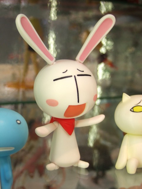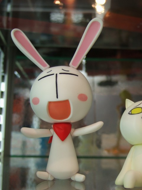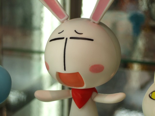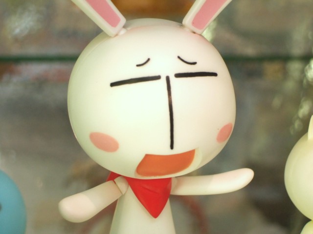 これは、Wipkipediaによると「ベッキーが連れている二足歩行する謎の白ウサギ。なお、ウサギは氷川漫画によく登場する動物の一種。本人曰く「雪ウサギ」。いつも不幸な目に遭い、泣き虫でいじけやすい。宇宙人の力を持ってしてもその謎は解明できなかった。動物番付八連(ぱーれん)制覇以降、南条にもらった赤いマフラーを首に巻いている。手に指が無いため道具は持てない。姫子からは「メソちゃん」と呼ばれている。登場人物と会話をしているが、原作ではセリフは吹き出しのなかに書かれておらず「声」をだしているのか「念話」なのか明瞭ではない。ただしドラマCDやアニメでは声優が声を当てている。」というキャラクターのメソウサをねんどろんシリーズとして可動フィギュアで立体化したものです。