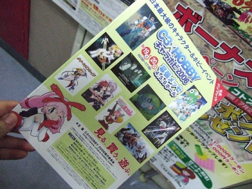 コトブキヤ秋葉原店の店頭では、8月19〜20日に開催される、キャラホビ2006の無料公式パンフレットの配布が開始していました。
